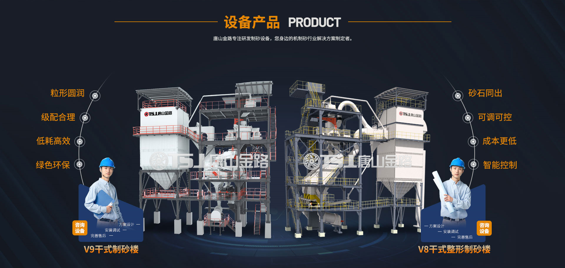 唐山金路作為一家集研發(fā)、生產(chǎn)、銷售、服務于一體的制砂機械設備企業(yè),一直致力于環(huán)保型破碎制砂設備的研發(fā)與生產(chǎn),現(xiàn)建有年產(chǎn)100萬噸的機制砂生產(chǎn)實踐基地。公司自主研發(fā)的V8干式整形制砂樓、V9干式制砂樓,具有綠色環(huán)保、能耗低產(chǎn)量高、智能控制等特點,產(chǎn)出的機制砂級配合理、粒形圓潤,是制砂生產(chǎn)企業(yè)的理想產(chǎn)品。